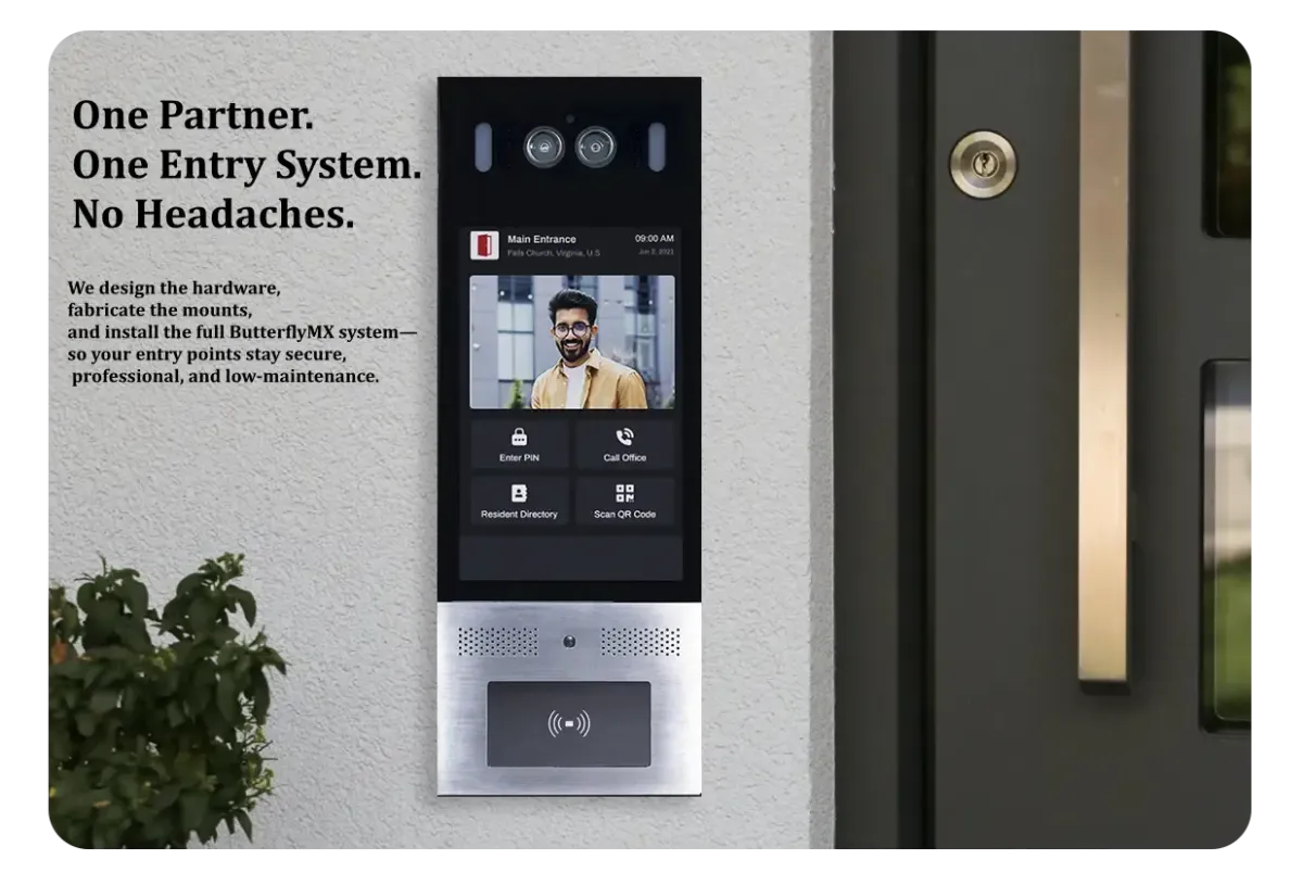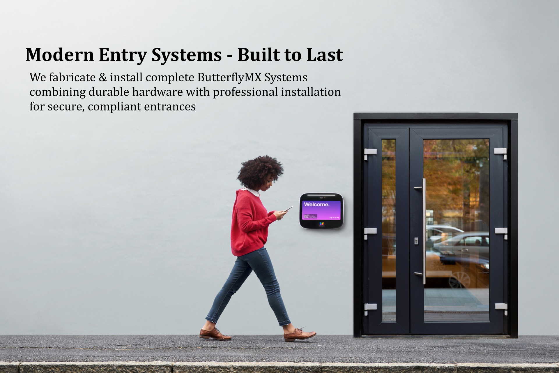 We design, fabricate, and install durable entry system hardware and complete ButterflyMX systems for multifamily and commercial properties. One partner, one accountable outcome—built to last in real buildings.