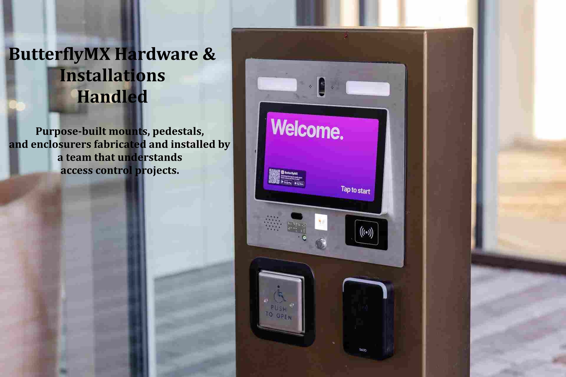 We fabricate commercial-grade mounts, pedestals, and enclosures, then install and commission complete ButterflyMX systems. Every detail is aligned to the property, the code requirements, and long-term durability.